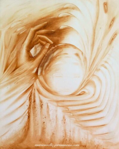 Cette main ligotée Est le reflet de Ta Pensée Celle d’un maintien D’un autre lendemain Main dictante Main tranchante Tu suis son chemin En espérant un meilleur destin LE REFLET EN TON SEIN Mais Soudain… Ton attention Change de Direction… Quelque chose de léger Se met à vibrer… En TOI Tes sens s’élargissent… Et… TU… ECOUTES… Quelque chose de profond Quelque chose d’inattendu Quelque chose qui t’attire Quelque chose qui te vibre Tu sors de Ta Prison Et commence à rayonner à l’Unisson C’est doux C’est léger C’est rassurant C’est apaisant Et… TU ECOUTES… Ecoute intérieure Ecoute profonde Ecoute intense Tourne ton regard …. Main bienveillante Main rassurante Main guidante De l’Instant Elle quitte ses chaînes Elle sort de son isolement Ensemble vous naissez D’une autre réalité Vous communiez Vous vibrez Vous vivez En symbiose parfaite Et… Tu écoutes… Tu écoutes… Tu écoutes… Ecoute intérieure profonde Ecoute extérieure en observateur De tout ce qui est là Juste pour Toi Tu nais Tu renais Tu t’agrandis Tu t’élargis Entre en toi La Paix La Sérénité Et… TU ECOUTES… ECOUTES… ECOUTES… Cette main REFLETMNJ